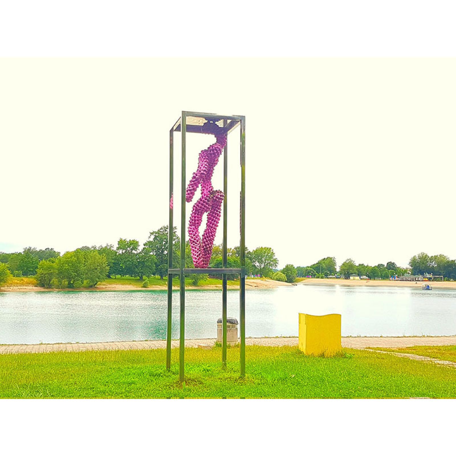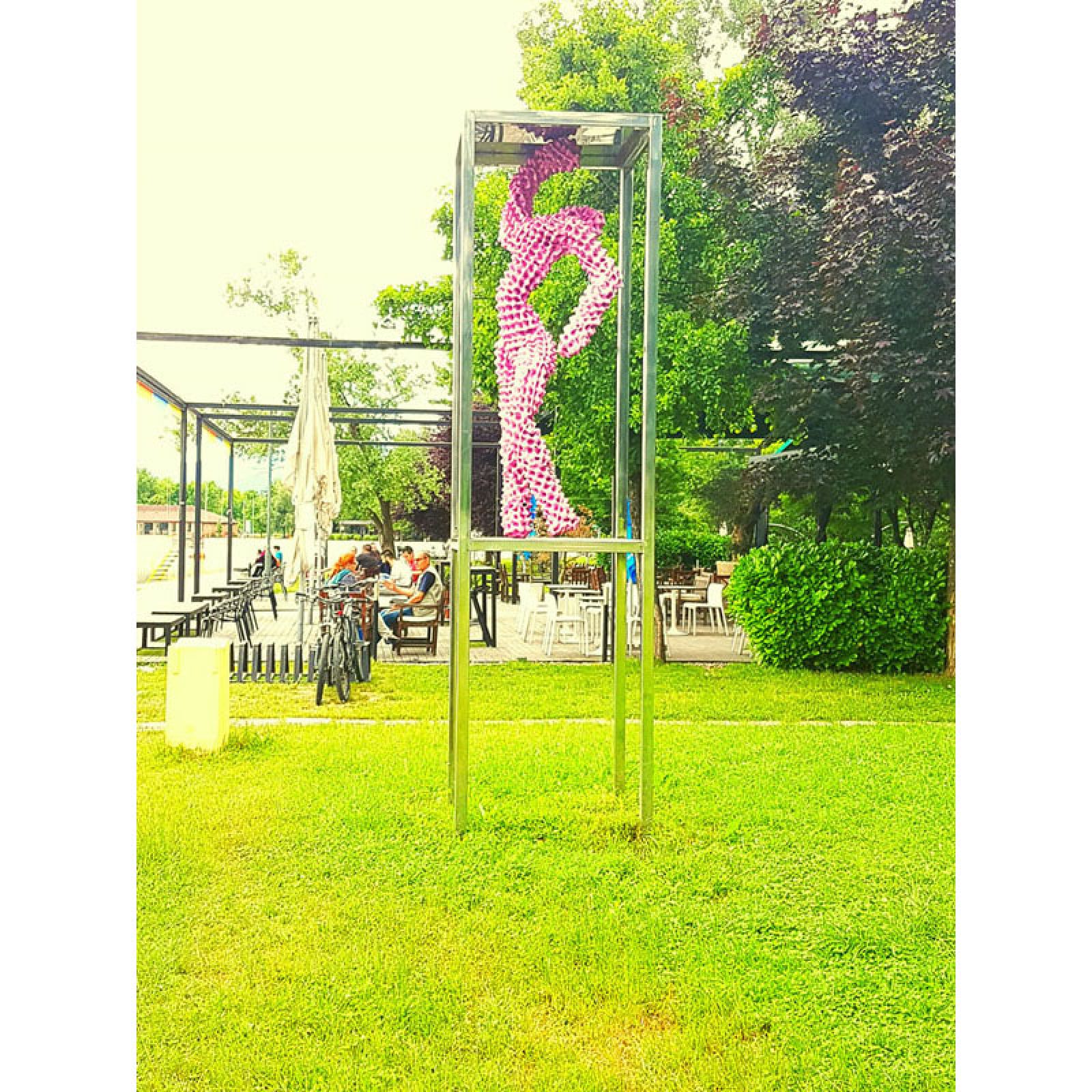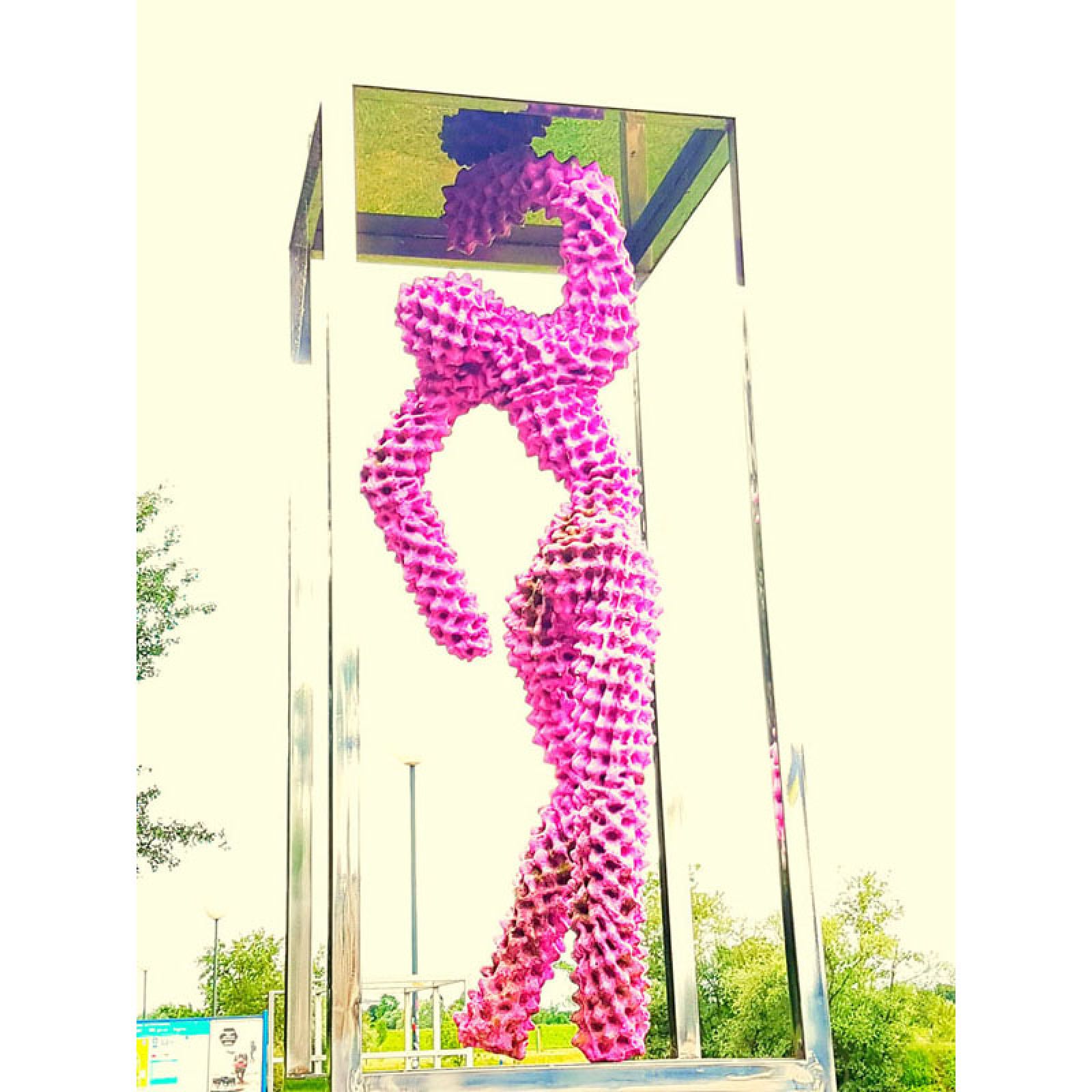 Skulptura je izvedena procesom recikliranja kartonske ambalaže za jaja, oslanjajući se na ideje arte povera. Upotrebom potrošnog materijala suptilno sugerira na sveopći komercijalizam suvremenog društva, te kroz sofisticirani plesni pokret figure zatočene u plesnom kavezu vuče paralelu između subkulture noćnog života kluba ispred kojeg je skulptura postavljena i sveprisutnog konzumerizma suvremene populacije.